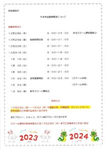 12月23日 年末年始営業時間のお知らせ